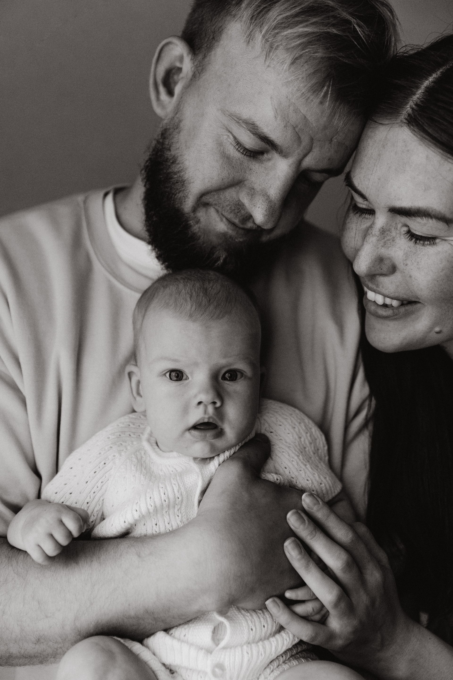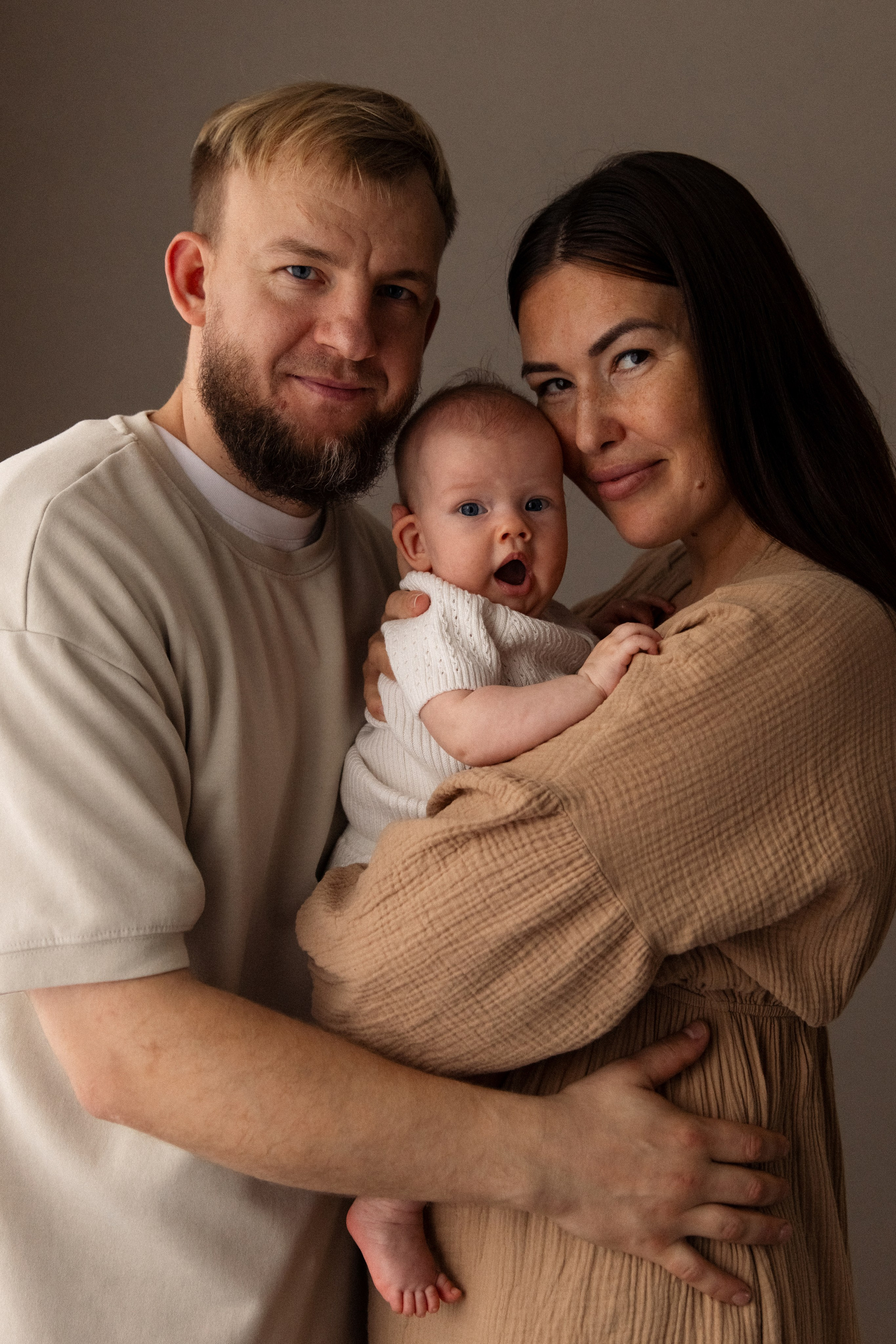 Фотосессия проходит в привычной для семьи обстановке — дома. Нет лишнего стресса, переездов и опозданий. Малыш чувствует себя спокойно, а это — залог естественных, нежных кадров.
